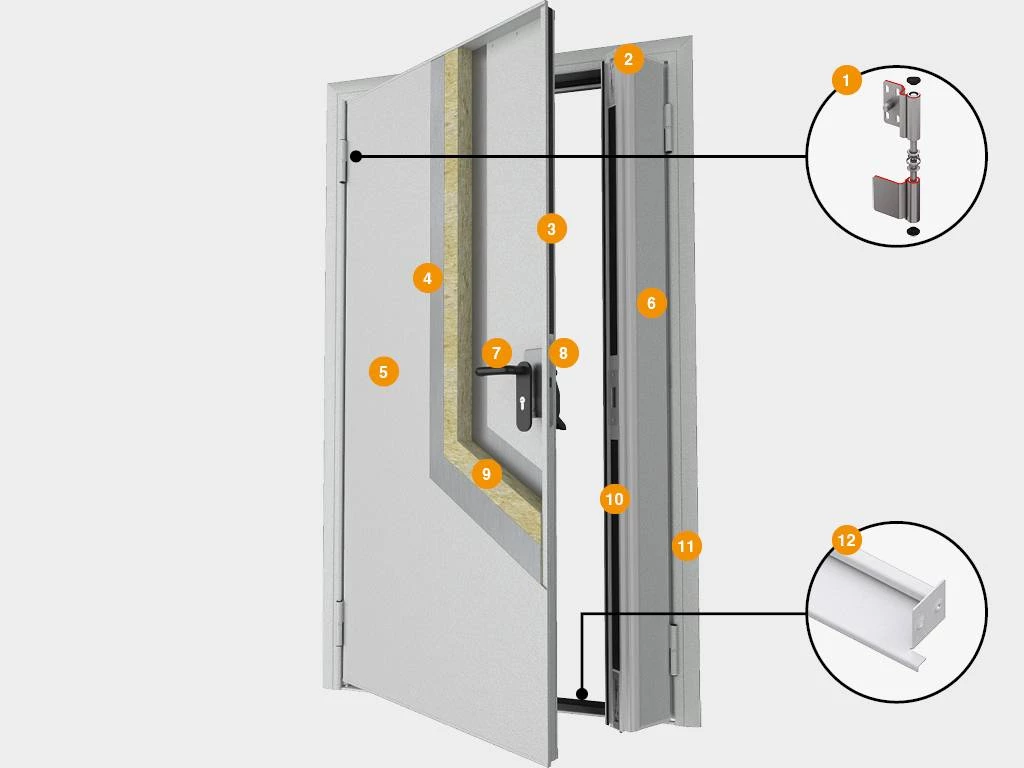 Высокий уровень противопожарной защиты указан в самом названии. В технических характеристиках указан предел огнестойкости EI60. Он означает, что при возникновении чрезвычайной ситуации дверь способна устоять выдержать непрерывное огневое пламя в течение часа. За такой промежуток времени можно эвакуировать огромное количество людей.